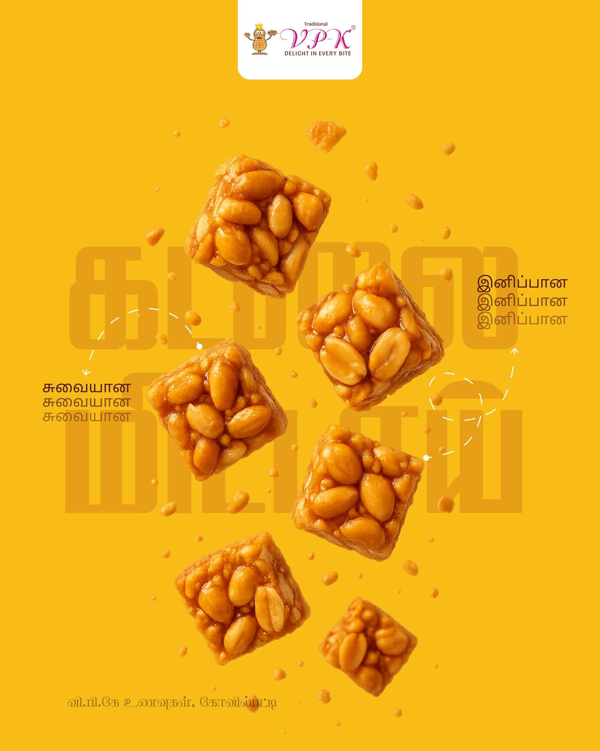 Handcrafted Peanut Cubes made with premium roasted peanuts, natural jaggery, aromatic cardamom, and zesty dry ginger. This wholesome Indian treat not only satisfies sweet cravings but also provides a natural energy boost and aids digestion. A perfect guilt-free snack rooted in tradition.